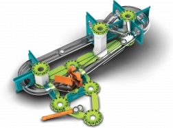 Bouw je eigen racebaan, laad de knikker en kijk hoe het magnetische kanon hem over de baan schiet. Dankzij de zwaartekrachtaandrijving en roterende onderdelen ontstaan indrukwekkende kettingreacties die de natuurkundige wetten op een begrijpelijke manier laten zien.