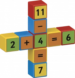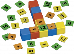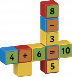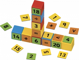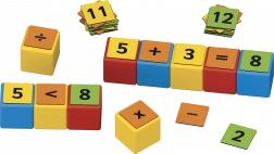 Dubbelzijdige clips met cijfers en tekens maken het mogelijk om eenvoudige en complexere sommen te leggen. Kinderen oefenen spelenderwijs optellen, aftrekken en de basis van vermenigvuldigen.