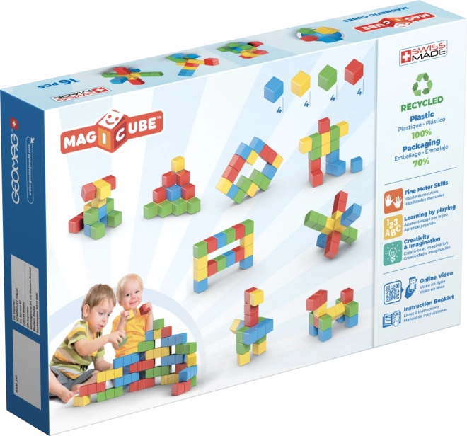 Geomag Magicube Creative is een slimme bouwset voor jonge ontdekkers. De magnetische blokken verbinden aan elke zijde, waardoor kleine kinderen gemakkelijk figuren, torens en eenvoudige 3D-vormen maken. De vrolijke kleuren nodigen uit tot spelen en leren – kinderen trainen spelenderwijs oog-handcoördinatie, kleurherkenning en basisprincipes van constructie.
