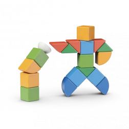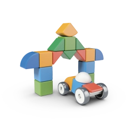 Grote, kleurrijke onderdelen met afgeronde hoeken zijn ontworpen voor kleine handjes. Ze stimuleren de fijne motoriek, hand-oogcoördinatie en de fantasie.