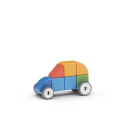 - Magnetische blokken, drie extra magnetische vormen, 4 magnetische wieltjes