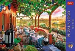 Geniet van rustige momenten met de premium puzzel uit de Tea Time-serie, die straalt met kleuren en de sfeer van een mediterrane wijngaard. Dankzij het kwaliteitskarton en de precieze stansvormen passen de stukjes perfect in elkaar en blijven ze stevig zitten, zodat je ook grotere samengestelde delen comfortabel kunt verplaatsen.