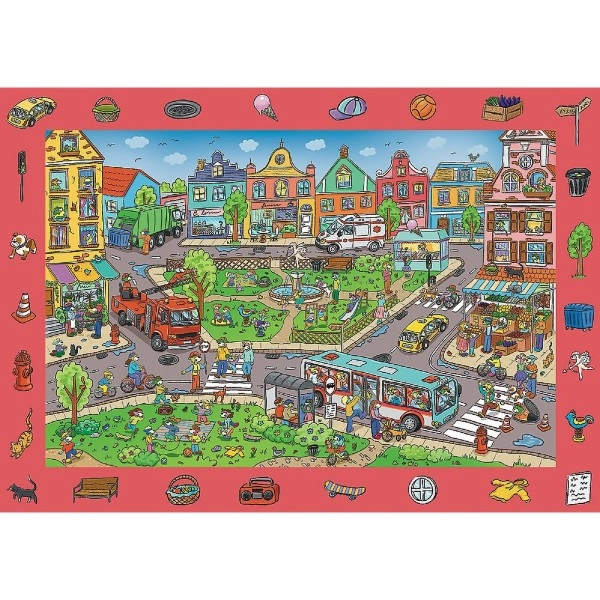 Duik in de levendige straatjes van de stad met de observatiepuzzel SPY GUY – Stad. Na het leggen wacht er nog een taak: vind alle voorwerpen die in het kader zijn afgebeeld. Elk stukje verbergt een klein verhaaltje en prikkelt de fantasie van kinderen.