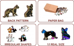 Deze puzzel is dubbelzijdig, wat betekent dat je het kunt maken aan de hand van het plaatje aan de voorkant of het patroon aan de achterkant. Het milieuvriendelijke ontwerp zorgt ervoor dat je geen plastic verpakkingen vindt, alleen een papieren zak en doos.