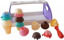 Met deze leuke ijsset maken kinderen in een handomdraai hun eigen ijsbar. Het serveerblad met houder houdt het hoorntje netjes op zijn plek en dankzij de lepel is het “scheppen” van ijs kinderspel. Ideaal voor rollenspel en het ontwikkelen van de verbeelding.