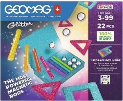 Geomag Glitter brengt een oogverblindende look naar de klassieke magnetische bouwset. De set van 22 delen combineert kleurrijke glinsterende staafjes, gladde stalen bolletjes en transparante panelen die eenvoudig tot stevige constructies te verbinden zijn. Ideaal voor speels leren en creatieve ontspanning.