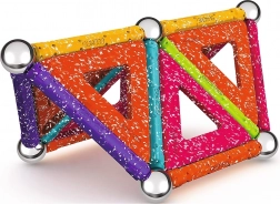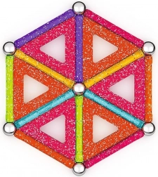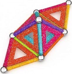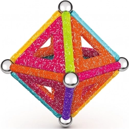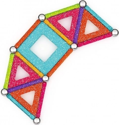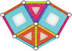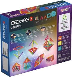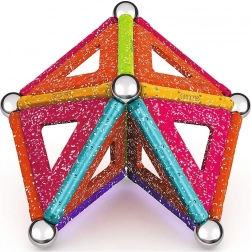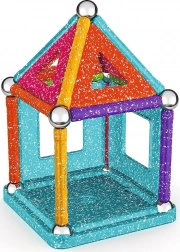 GEOMAG Glitter brengt de magie van magneten in schitterende glans. Met gekleurde staafjes, stalen bolletjes en panelen bouw je eenvoudig huisjes, sterren en originele geometrische vormen. Alle kunststof onderdelen (behalve de bolletjes) hebben een glinsterende afwerking die elke constructie een bijzondere uitstraling geeft.