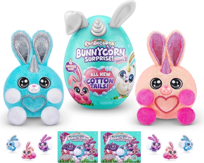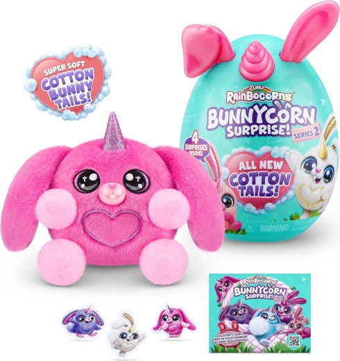 Ontdek de schattige wereld van RAINBOCORNS Boo‑Boocorn Surprise – elk zacht konijntje verbergt 4 verrassingen in een kleurrijk eitje! Super zachte pluche, glinsterende oortjes en een verzamelbaar design maken het een perfect cadeau voor kinderen vanaf 3 jaar. De kleur van de verpakking en speeltjes is willekeurig – geniet van de unboxingpret!