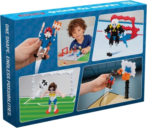 Maak spelers, een doel en een bal en speel spannende wedstrijden. Plus-Plus onderdelen maken gedetailleerde 2D- en 3D-bouwwerken mogelijk.