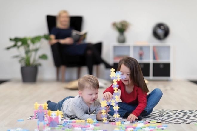Plus-Plus BIG Pastel is een veilige en leuke bouwset voor de allerkleinsten die vrij spel en leren stimuleert. De plusvormige stukjes klikken gemakkelijk in elkaar, zodat kinderen eenvoudige 2D-figuren en de eerste 3D-modellen kunnen creëren. Het palet met pasteltinten is visueel aangenaam en prikkelt de creativiteit.