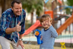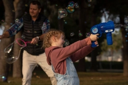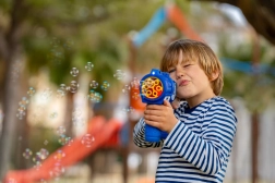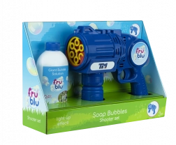Fru Blu bubbel-shooter schiet met hoge snelheid een enorme hoeveelheid bellen af en zorgt voor uren speelplezier voor je kind. De bellen worden verlicht door LED-licht, dat hun unieke kleuren benadrukt. Dankzij het eenvoudige gebruik en het morsbestendige vloeistofreservoir is bellen blazen een geweldige activiteit voor zowel jongere als oudere kinderen. De set bevat een bubbel-shooter en een fles met 0,4 liter vloeistof. Benodigde batterijen: 3 x AA. Batterijen zijn niet inbegrepen. Het speelgoed is geschikt voor kinderen vanaf 3 jaar.