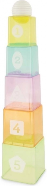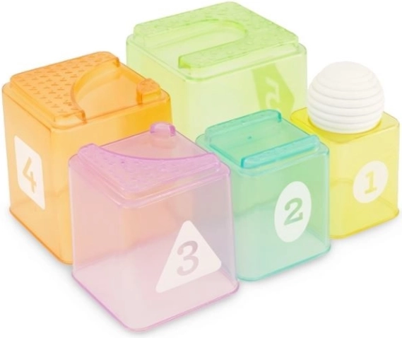 Bekers in verschillende maten zijn eenvoudig tot een stabiele toren te stapelen en helpen grijpen, coördinatie en geduld te ontwikkelen.
