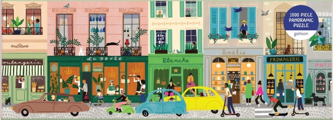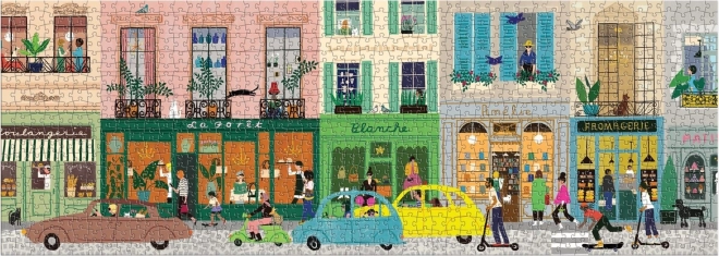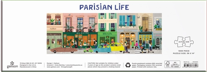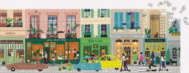 De panoramapuzzel 'Parijse Leven' brengt je de ervaring van romantisch Parijs. Een kunstwerk van Anne Bentley vangt de ouderwetse charme van wijken als Le Marais. Na voltooiing heeft de puzzel afmetingen van 99 x 35,4 cm, wat een geweldige grootte is voor interieurdecoratie.