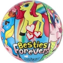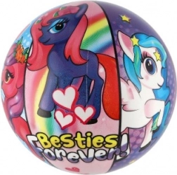 De bal is versierd met kleurrijke afbeeldingen van pony's, die de aandacht trekken en vreugde brengen in elk spel.