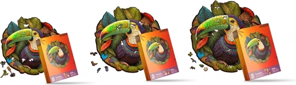 Elk stukje is nauwkeurig met laser gesneden voor perfecte precisie en gladheid. De puzzel toont een prachtig beeld van een toekan, gedrukt met moderne UV-digitale printtechnologie, die werkelijk levendige en realistische kleuren biedt.