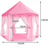 Deze roze kindertent creëert een knus 'paleis' waar de verbeelding tot leven komt. De zeshoekige basis biedt voldoende ruimte voor kussens, knuffels en boekjes, terwijl doorzichtige gaasgordijntjes bij de zes ingangen voor een gevoel van privacy zorgen en tegelijk een uitstekende luchtcirculatie bieden. De tent is geschikt om te spelen voor maximaal 2 kinderen onder toezicht van een volwassene.