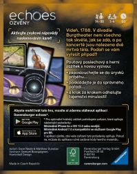 Echoes: Viool neemt je mee naar Wenen in 1788, waar na een groots concert twee dode lichamen en talloze onbeantwoorde vragen achterblijven. Jouw taak is te luisteren naar audiohints, aanwijzingen te koppelen en gebeurtenissen in de juiste volgorde te plaatsen. Dankzij de unieke combinatie van geluidssporen en fysieke kaarten beleef je speurwerk als nooit tevoren.