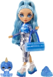De stijlvolle pop Skyler uit de Rainbow High Classic Rainbow Fashion-collectie komt met lang blauw haar, een glanzende outfit en een uitgebreide set accessoires. In de verpakking vind je ook slijm waarmee je schoenen en tas kunt versieren en zo unieke modieuze combinaties kunt creëren.