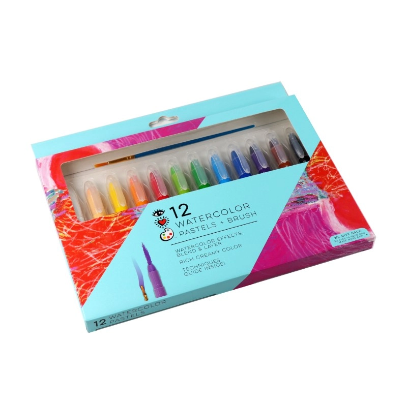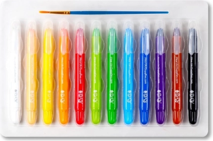 Ontdek eindeloze mogelijkheden om met kleuren te spelen en maak je eigen originele schilderijen. De set bevat een penseel en 12 oliepastels in een draaipotlood. Daardoor hoef je niet te slijpen en kun je nauwkeurigere composities maken. De speciale olieachtige consistentie van de pastels maakt het eenvoudig om met water te vervagen en kleuren te mengen, en de hoge pigmentatie zorgt voor intense, levendige kleuren. De set bevat ook een korte gids met schildertechnieken. Daarmee leert iedereen kleuren te combineren en nieuwe tinten te creëren.