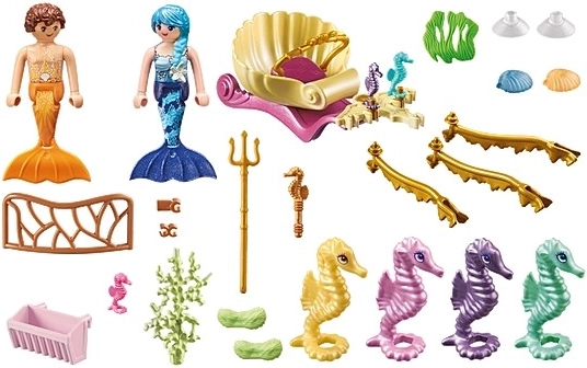 Duik in de diepte van de oceaan en geef de fantasie alle ruimte. Deze gedetailleerde set bevat een glinsterende onderwaterkoets, vier grote zeepaardjes en twee figuren van zeemeerminnen. De serie PLAYMOBIL Princess Magic stimuleert creatief spel en het bedenken van eigen verhalen voor kinderen vanaf 4 jaar.