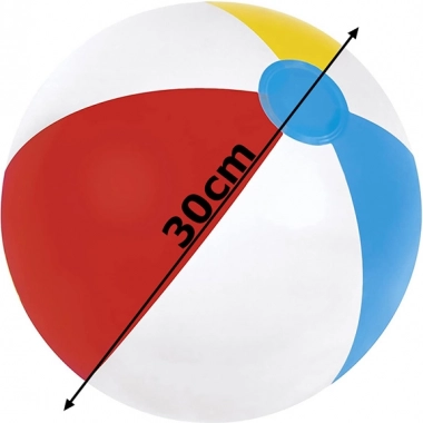 Geniet volop van de zomer met deze bonte opblaasbare strandbal met een diameter van 30 cm. Licht, makkelijk mee te nemen en ideaal voor spelletjes in het zwembad en op het strand. Dankzij de felle kleuren is hij goed zichtbaar in het water en zorgt hij voor veel plezier voor zowel kinderen als volwassenen.