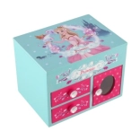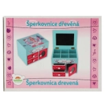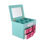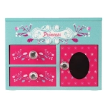 Deze schattige houten sieradendoos in turquoise-roze met prinsessen- en bloemmotieven is een geweldige oplossing voor het organiseren van ringetjes, oorbellen, armbandjes en kleine geheimen. Onder het opklapbare deksel met spiegel vind je ingedeelde vakken voor dagelijks overzicht en snelle keuze.