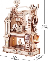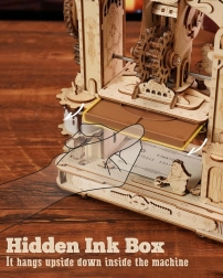 Blaas een klassieke drukpers nieuw leven in, in een unieke steampunkstijl. Na het indrukken van de hendel draaien de tandwielen, de figuurlijke “drukbeertjes” brengen de machine op gang en na voltooiing gaat het licht aan. De zijwaartse middeleeuwse klok met astrolabium geeft het model charme en authenticiteit. Ideaal als creatief DIY-project, aantrekkelijke decoratie en slimme educatieve tool om technisch inzicht te ontwikkelen.