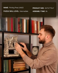 Robotime ROKR verlicht houten 3D-puzzel – klassieke drukpers (303 stukjes)
