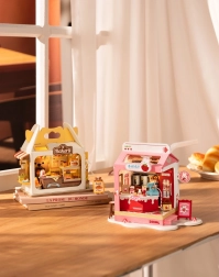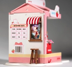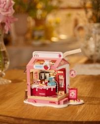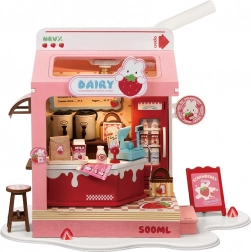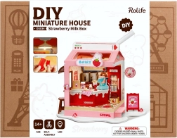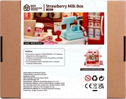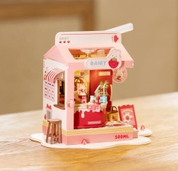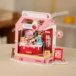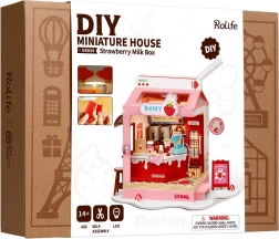 Ontdek de charme van een miniwereld met het miniatuurhuisje Melkbar Strawberry. Deze creatieve bouwset van Robotime verrukt met realistische details, speels design en sfeervolle LED-verlichting. Het bouwen is ontspannend en het resultaat is een charmante decoratie voor op de plank of het bureau.