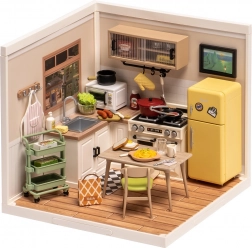 Ontdek de wereld van gedetailleerde ROBOTIME-miniaturen en creëer een gezellig keukentje in gedempte tinten. Het model omvat een fornuis, kastjes, eetmeubilair en kleine accessoires die natuurlijk en authentiek ogen. Dankzij de LED-verlichting komt elk detail tot zijn recht en wordt je creatie een blikvanger op de plank of het bureau.