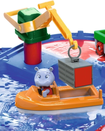 Laat nijlpaard Wilma met de containerschip op reis gaan door de waterwegen. In de haven helpt de kraan je om de container op het amfibievoertuig te laden. Door met de functies van de set te experimenteren leert je kleuter hoe de kraan en de pomp werken.