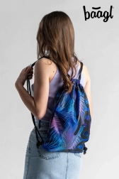 Op zoek naar een veelzijdige zak voor schoenen of kleine spullen die het goed doet op school, tijdens trainingen en op reis? Deze BAAGL gymtas met een opvallend tropisch design in blauw‑paarse tinten op een zwarte achtergrond springt in het oog en biedt tegelijk praktische details voor dagelijks gebruik.