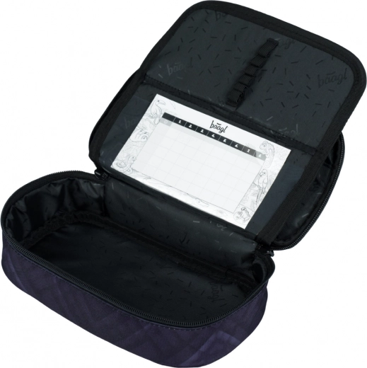 Dankzij het uitklapbare tussenschot en het binnenvak met rits heb je potloden, pennen, gum en kleine spulletjes altijd bij de hand. Het vak voor het rooster helpt bij het plannen van de schooldag. De etui is gemaakt van gerecycled materiaal en is daardoor milieuvriendelijker.