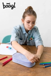 Praktische en duurzame schooletui Baagl Lilac met een strak design en doordachte indeling. Biedt een stevige constructie, een uitklapbare scheidingsflap, een binnenvak met rits en een vak voor het lesrooster. Gemaakt van gerecycled materiaal en uitgerust met hoogwaardige YKK-ritsen. Wordt geleverd zonder vulling.