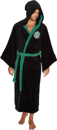 Stijlvolle herenbadjas geïnspireerd op de wereld van HARRY POTTER in Zwadderich-uitvoering, perfect voor elke fan. Biedt een universele maat, een comfortabele lengte van 120 cm en zacht 100% polyester voor maximaal comfort thuis na het baden of tijdens het loungen.