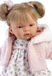 De realistische pop Llorens Joelle van 38 cm, die praat en huilt, heeft een zacht stoffen lichaam en een vinyl hoofd en ledematen. Met de magnetische speen stel je het huilende baby’tje gemakkelijk gerust. Handgemaakt in Spanje, geleverd in een cadeaudoos – een geweldig cadeau voor kinderen vanaf 3 jaar.