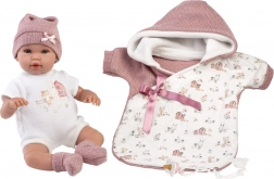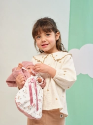 De set bevat een 7-delige outfit, een slaapzak en een fopspeen. De pop huilt wanneer je op het buikje drukt – batterijen RL-44 zijn inbegrepen.