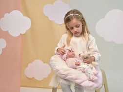 In de verpakking zit een tweedelige kledingset en een kussentje, zodat kinderen kunnen doen alsof ze de pop in slaap wiegen of verschonen. De pop heeft beweegbare armen, benen en hoofd, wat de fijne motoriek en creatief spel stimuleert. Ideaal als cadeau voor kleine verzorgers én voor poppenverzamelaars.