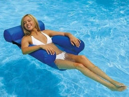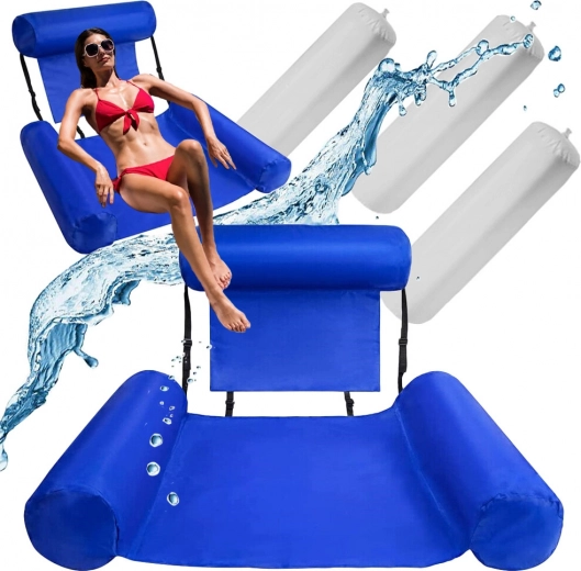 De opblaasbare waterstoel combineert het comfort van een ligbed met de stabiliteit van een drijver. Twee afzonderlijke cilinders voor rug en dijen worden verbonden door een elastisch textielnet, waardoor je lichaam zacht kan afkoelen in het water en je tegelijkertijd een comfortabele half liggende houding behoudt. Perfect voor volwassenen en tieners om te relaxen, zonnebaden en plezier te hebben in het zwembad.