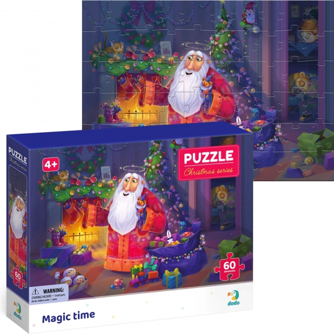 Geniet van gezellig samenzijn met de familiepuzzel DODO met het thema Magische kerstsfeer. De puzzel met 60 stukjes is ideaal voor kinderen en beginnende puzzelaars, biedt een prachtige winterillustratie en heeft na het leggen een afmeting van ca. 32 × 23 cm.