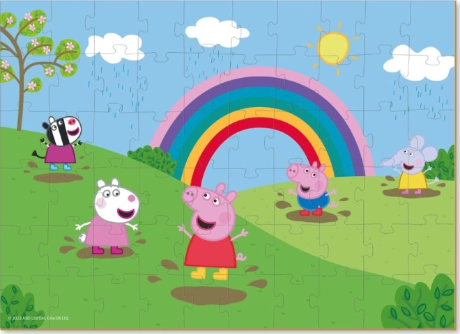 Ontdek een kleurrijk avontuur met de puzzel Peppa Pig: Regenboogpret. Dankzij 60 stevige stukjes is het leggen leuk voor kinderen, die tijdens het spelen hun concentratie en verbeelding oefenen. De uiteindelijke afbeelding van 32 × 23 cm is perfect om in de kinderkamer tentoon te stellen.
