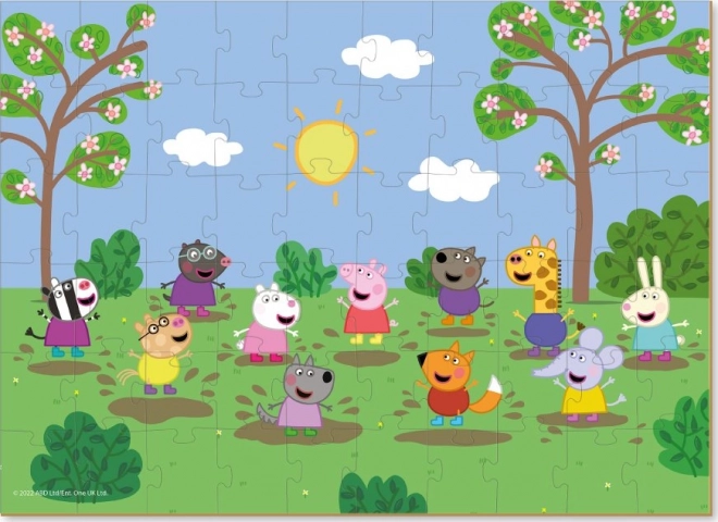 Ontdek de schattige puzzel met het motief van PEPPA PIG, die kinderen plezier in de zon brengt en blijdschap bij elk gelegd stukje. De set met 60 stukjes stimuleert de fijne motoriek, concentratie en logisch denken; de voltooide puzzel is ongeveer 32 × 23 cm groot.