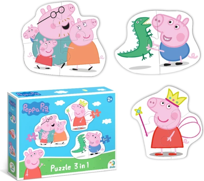 Ontdek de magie van puzzelen met de favoriete personages uit de serie PEPPA PIG. Deze 3-in-1 set biedt drie afzonderlijke contourafbeeldingen met oplopende moeilijkheid (2, 3 en 4 stukjes), perfect voor de allerkleinste beginnende puzzelaars. Dankzij de grotere en stevige stukjes leren kinderen zich op een speelse manier te concentreren en geduld te hebben.