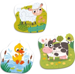 Ontdek leuke contourpuzzels voor kinderen met boerderijdieren in een 3-in-1 set. Puzzelen met verschillende moeilijkheidsgraden ondersteunt de ontwikkeling van de verbeelding, het logisch denken en de fijne motoriek van kinderen.