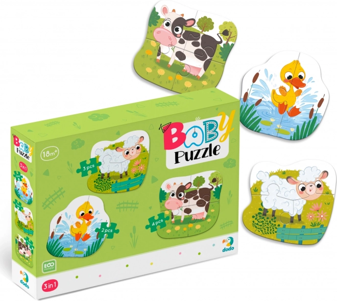 Deze set bevat drie afzonderlijke contourpuzzels met boerderijdieren, elk met een verschillend aantal stukjes (2, 3 en 4). Dankzij de oplopende moeilijkheidsgraad is de set ideaal voor de eerste puzzelervaringen, bevordert concentratie en geeft kinderen plezier en een gevoel van succes.
