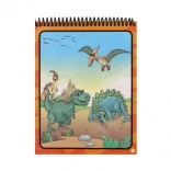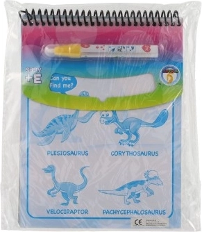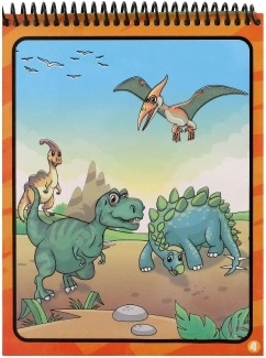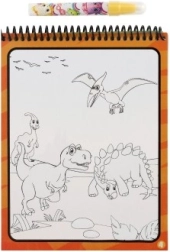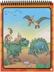 Ontdek de magie van schilderen met water met dit unieke kleurboek met vier herbruikbare pagina’s met dinosaurusmotieven. Kinderen gebruiken de waterpen om verborgen kleuren op de afbeeldingen te onthullen; na het drogen worden ze opnieuw transparant voor nieuwe kunstwerken.