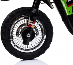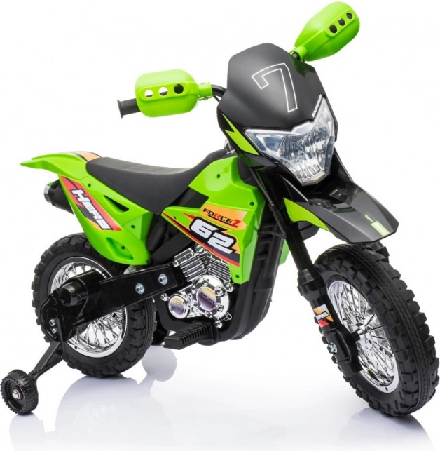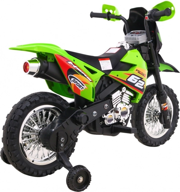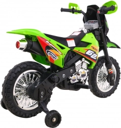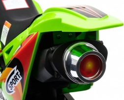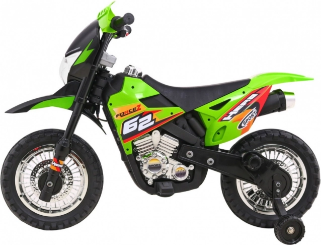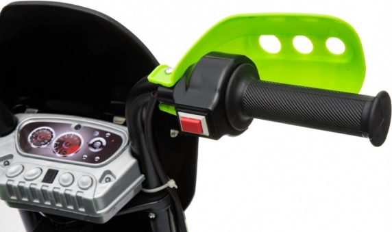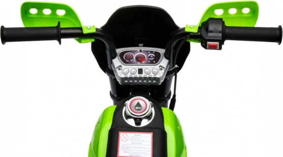 De elektrische kindercrossmotor is ideaal voor de eerste ritten op twee wielen. Eenvoudige bediening dankzij het gas aan het handvat en de vooruitstand helpt vertrouwen op te bouwen, terwijl de afneembare zijwieltjes voor stabiliteit zorgen op elk oppervlak. De voorste LED-verlichting en het paneel met geluiden en melodieën zorgen voor extra plezier en realisme.