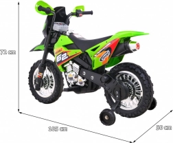 Leuk en veilig rijden voor jonge rijders: deze kindercrossmotor met een betrouwbare 6V-accu en RS-390-motor biedt eenvoudige gasbediening aan het handvat, zijwieltjes voor stabiliteit, voorste LED-verlichting en een geluidspaneel met 4 melodieën. Wielen met een rubberen loopvlak zorgen voor betere grip en een stillere rit.