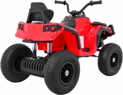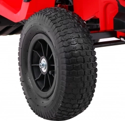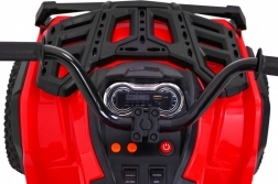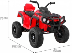 De rode elektrische kinderquad biedt uitstekende stabiliteit dankzij luchtgevulde lagervelden, een soepele rit met 2× 45 W motoren en een 12 V/7 Ah accu. Inclusief dubbele vering, LED-verlichting, uitgebreid audiopaneel (MP3/FM/USB/SD/AUX), zitje van eco-leer en draagvermogen 30 kg – ideaal voor comfortabele en veilige ritjes.