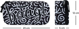 De etui met uitklapbare scheidingswand, klein ritsvak en ruimte voor het rooster houdt alle kleinigheden netjes op orde. De gymzak met stevige koorden is duurzaam en afwasbaar, klaar voor clubjes en gym.